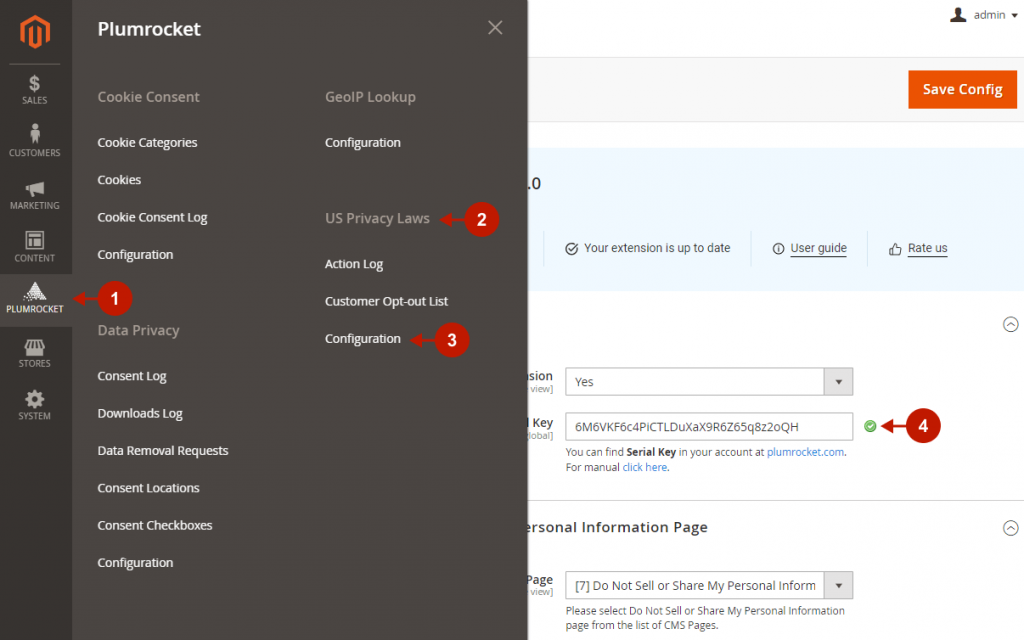 - Navigate to your Magento 2 Admin Panel and click on the “Plumrocket” tab.