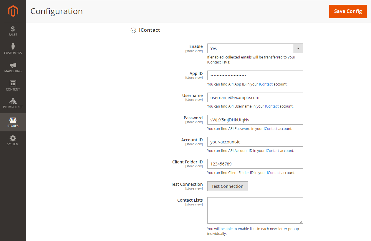 The Magento 2 iContact integration is now configured. Next, you can move on to setting up your Contact Lists and Fields Mapping.
